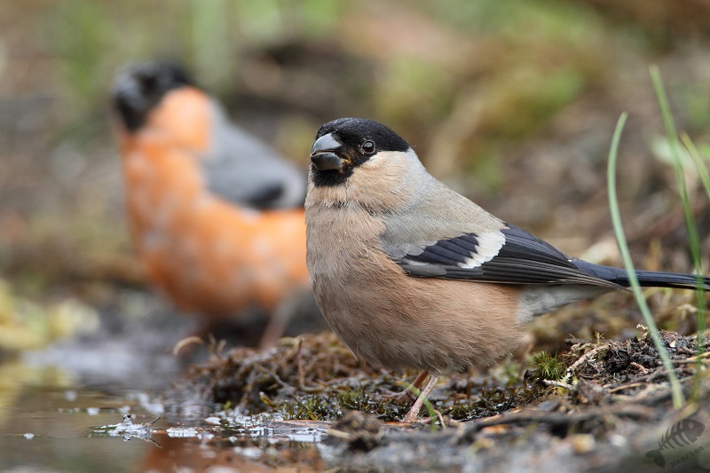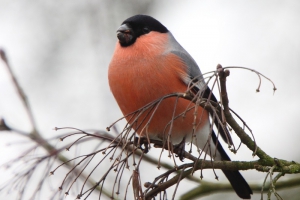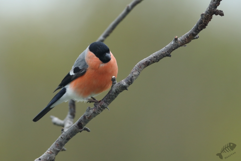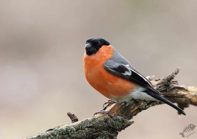 Ik vind de gedachte zo mooi dat, wanneer je mooi bent, je niet mooi hoeft te kunnen zingen. En ik vind de Goudvink het toonbeeld van deze gedachte. Een meer dan bescheiden, melancholische dju en een mengsel van kwelende en krassende tonen (aldus Peterson). Maar het grappige is dat je de bescheiden dju snel hoort en dat je dan ook zeker weet dat er een Goudvink (koppeltje) in de buurt zit. De eerste keer dat ik ze ooit zag was ergens in Drente op een camping waar we even op bezoek waren. Ik kon nauwelijks geloven dat je ze op zo’n plek zou kunnen vinden, maar niets bleek minder waar. Toen ik in Ede kwam wonen, kreeg ik ze meer te zien. Elke winter kwam er een groepje van 4 tot 6 individuen in een Elzenboom de “helicoptertjes” plukken. Ze kondigden hun bezoek vaak van wat afstand aan door hun fluit en ik wist dat ik op moest gaan letten. Regelmatig zaten ze aan de verkeerde kant van de boom, maar zo af en toe zaten ze goed en kon ik mijn eerste foto’s maken van deze kleurrijke vogels. Later bleken ze ook de verschillende schuilhutten te bezoeken en kreeg ik hier de gelegenheid hun statieportretten te maken. Het is bijna onwerkelijk dat zulke gekleurde vogels hier rondvliegen, het doet bijna tropisch aan. Dus hun dju is misschien wat koeler, van hun uiterlijk kun je het heerlijk warm krijgen!