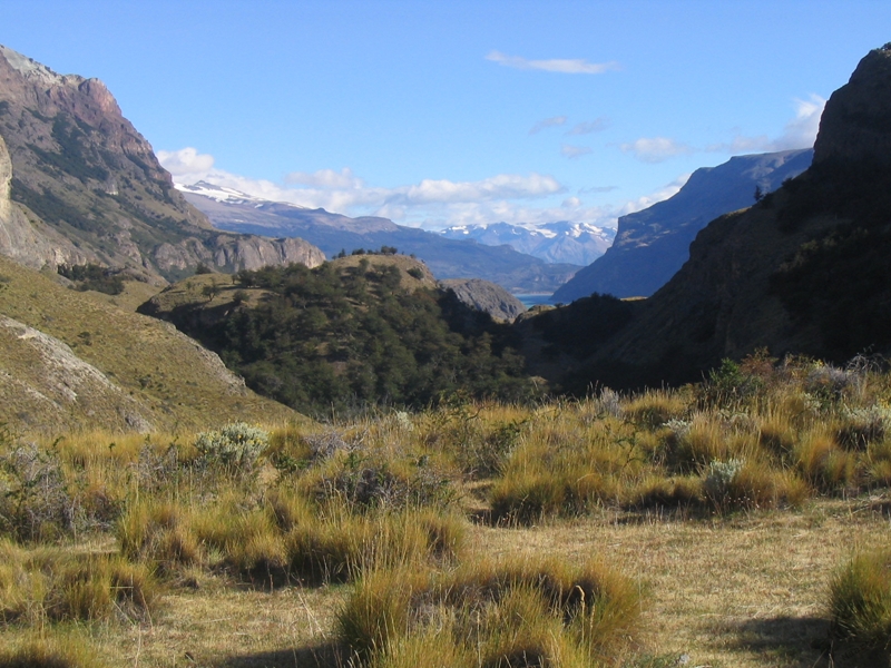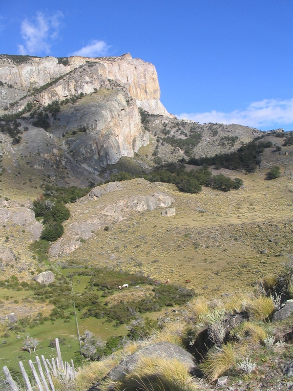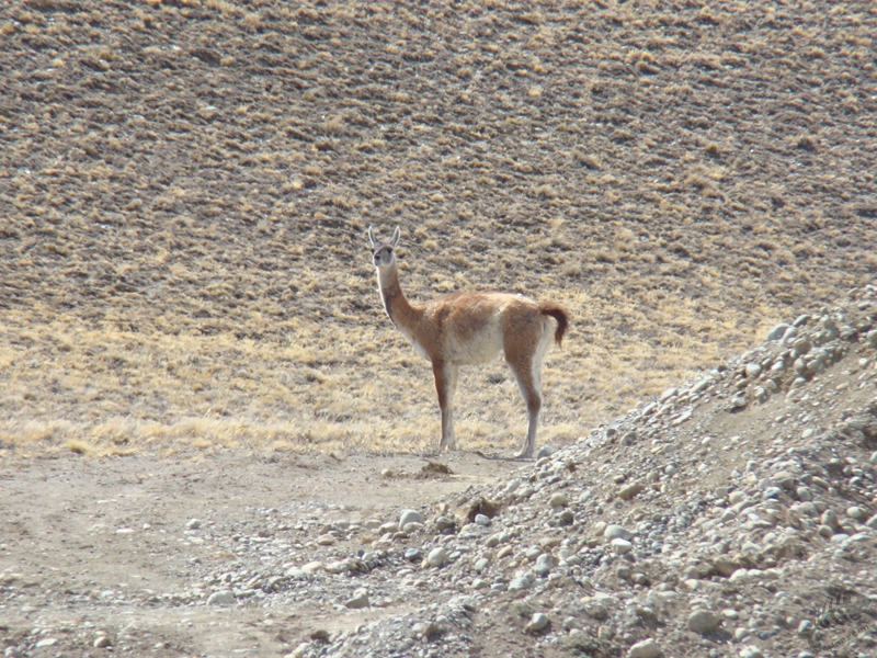 Een Volkswagen Col (Zuid-Amerikaanse equivalent van de Golf) bleek geen terreinauto en we hebben de laatste 100 km in iets meer dan 4 uur gereden waarbij we geen mens gezien hebben. Alleen enkele Guanaco’s (een soort wilde Lama’s) en een Gordeldier. Wel was het landschap weer oogverblindend mooi. We reden door de échte Andes (tenminste zoals ik hem me voorstel), door droge dalen en langs zwaar geërodeerde bergen. Het laatste stuk naar de estancia reden we over “de 33” langs een prachtig meer, het Lago San Martin. Als je dan toch niet hard kunt rijden, is het wel fijn als je zo’n mooi uitzicht hebt. Laat in de middag kwamen aan bij de estancia. Gelukkig hadden ze nog een kamer voor ons, want eigenlijk hadden ze, ondanks dat we gereserveerd hadden, geen rekening meer met ons gehouden. Het maakte voor ons niet uit en we hebben buiten genoten van het weidse uitzicht, overdonderende stilte en alles overheersende rust.
