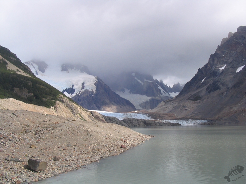 El Chaltén ligt aan de voet van Cerro Fitz Roy, ofwel Mount Fitz Roy. Het plaatsje is het startpunt voor vele hikers en bergbeklimmers, dus besloten we ons hier maar bij aan te sluiten en hebben een bescheiden, maar niettemin pittige, hike gemaakt: Sendero a Laguna Torre. Deze voerde door een dal en kwam uiteindelijk uit bij een bergmeer wat gevoed werd door een gletsjer dat aan de overkant lag. Wederom een spectaculair gezicht en een mooie beloning voor de gedane inspanning. Wat heel leuk was, was dat in de snelstromende beekjes welke uit het meer ontsprongen, fraai gekleurde Bergbeekeenden zwommen. In het Spaans heet hij “Pato de los Torrentes” wat ik veel mooier vind en beter vind passen.