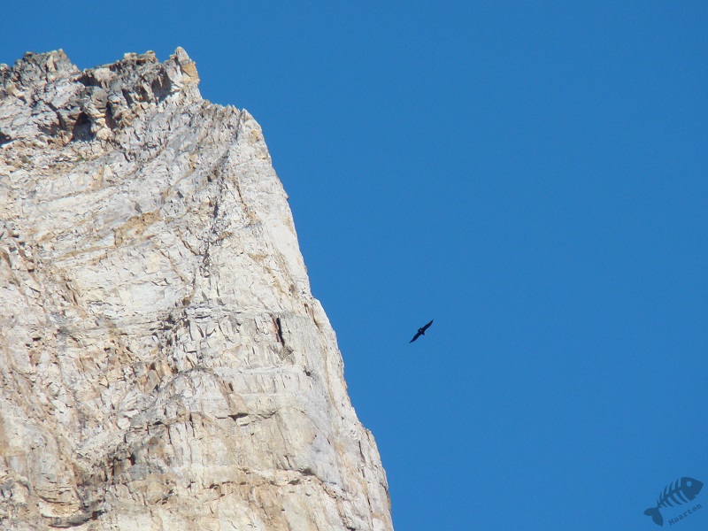 De volgende dag hebben we een wandeling gemaakt een heuvel op, waarbij ik de gelegenheid kreeg een aantal foto’s van vogels te maken. Uiteraard waren dit allemaal nieuwe onbekende soorten voor me, maar de Chileense Kievit leek nog een beetje bekend. Toen we hoger op een heuvel waren en ik opkeek naar een berg, zweefde hij voorbij: El Cóndor! Hij zat hoog, op grote afstand, maar was duidelijk herkenbaar aan zijn witte kraag. In een stuk in een reisblad, waaruit we het idee hadden gekregen om naar deze estancia te gaan, stond geschreven dat de eigenaar van de estancia aan een gast had gevraagd of ze de Condor gezien hadden en dat de gast antwoorde: “jawel 2”, waarop de eigenaar goedkeurend had gemompeld: “dat is mooi”. De Condor moest hier dus voorkomen en uit het stuk bleek dat het beter met ze ging, dus onze waarneming leek dat te bevestigen.