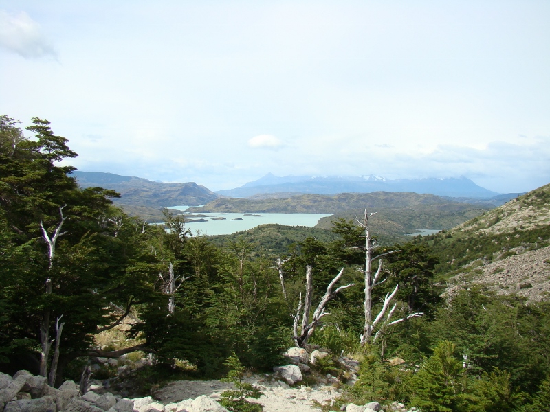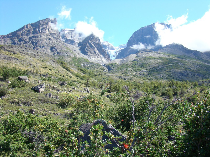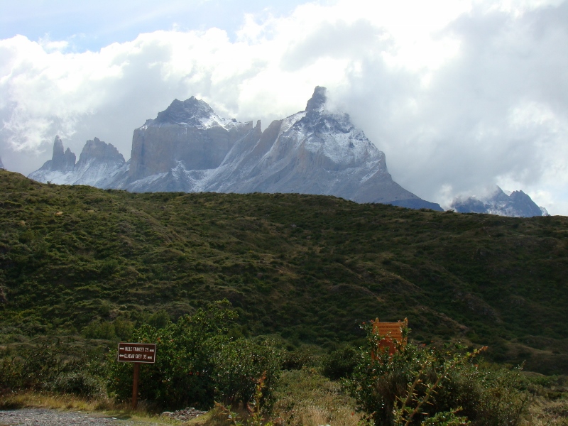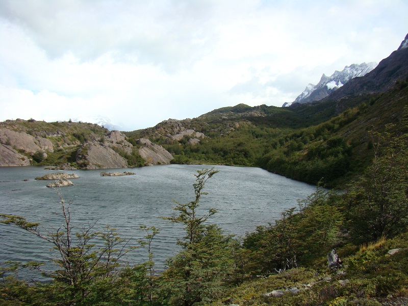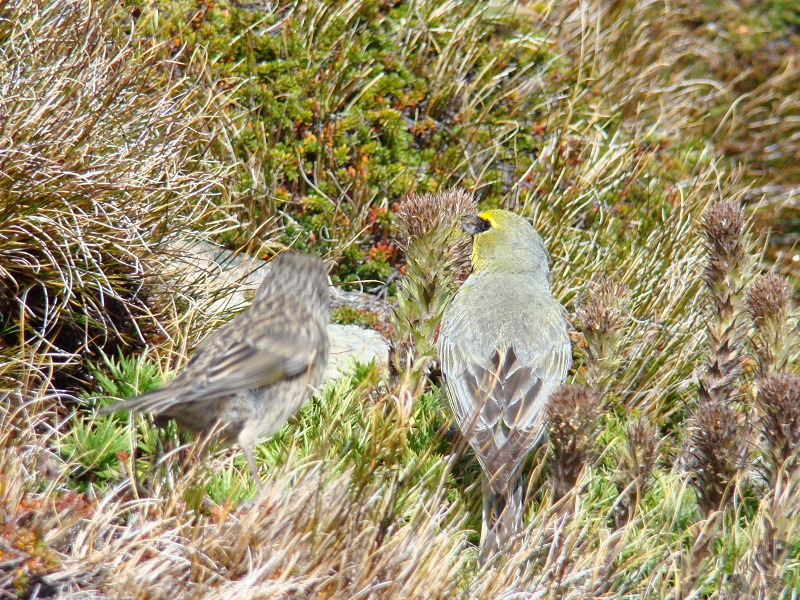 De volgende dag, 15 februari, waren de weersomstandigheden 180° gedraaid. Het regende en waaide met een massieve hoofdletter W. Het water uit het Lago Nordenskjöld waaide er letterlijk uit! Maar goed, we moesten verder om onze “W” te vervolgen en hebben deze dag de “middenpoot” gedaan op weg naar Refugio Pehoé. Tijdens deze tocht kregen we weer de meest mooie uitzichten te zien, onder andere op de Cuernos del Paine een aantal bergen dat het gezicht in dit gedeelte van de Torres bepaalt, maar ook over het Lago Nordenskjöld en verder. Het was Fantastisch! (het weer klaarde ook op, wat wel hielp…). De middenpoot van de W eindigt in het Valle del Francés: een vallei omringt door een bergketen wat een meer dan prachtig gezicht gaf. We konden hier nog een stukje verder, naar een punt van waaraf de daadwerkelijke “Torres” weer te zien zouden zijn. We hebben een gedeelte van de klim gedaan waarbij ik verschillende leuke vogels zag, zoals de Geelteugelgors, maar tijdgebrek en vermoeidheid deden ons besluiten de terugweg voor het bereiken van het uitzichtpunt te beginnen. Heel jammer natuurlijk, maar we moesten nog een stukje naar Refugio Pehoé…