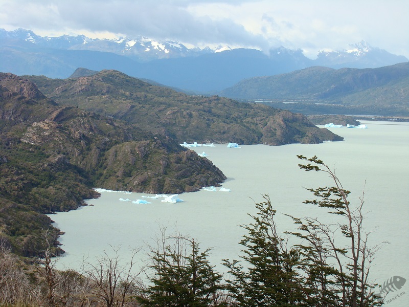 De laatste dag hebben we de “W” afgemaakt door de “linkerpoot” op te lopen langs het Lago Grey richting de Grey-Gletsjer. Toen we het uitzichtpunt bereikt hadden en de gletsjer fraai te zien kregen, zijn we weer teruggegaan en op de boot gestapt over het Lago Pehoé, om de bus weer te kunnen nemen naar Puerto Natales. Vanuit de bus kregen we nog een laatste uitzicht over dit machtig, prachtige gebied en hebben we waarschijnlijk de “torres” nog even te zien gekregen. Ik ben er niet helemaal zeker van, maar wil het graag geloven. Het was daarmee een fraaie afsluiting van een intensief, prachtige, zware, magnifieke, gigantische 4 dagen door de “Torres del Paine”!