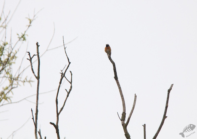 Het gebied van het Wilgenbos was eindelijk weer opengesteld, dus ben ik daar maar weer eens heengelopen. Ik had gehoord dat er een Tapuit zou moeten zitten, maar heb deze nooit gevonden. Wel hoorde ik een Gekraagde Roodstaart. Ik ben hem gaan zoeken en vond hem heel hoog in een dode boom. Dichterbij wilde hij ook niet komen… Een Winterkoning was wat meewerkender. Deze zat volop te zingen en een laag, kaal struikje en bleef daar even. Dit leverde erg leuke plaatjes op.