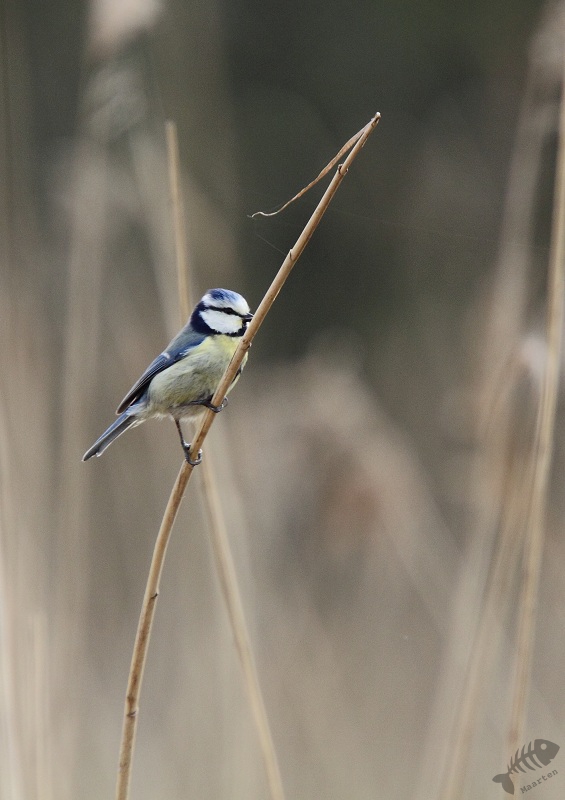 In het bosje trof ik eerst nog een Kleine Bonte Specht. Helaas zat deze erg hoog, dus mooi heb ik hem er niet op gekregen. Toen ik verder liep kwam ik mijn collega van eerder tegen. Hij was helemaal enthousiast want de Blauwborst was inderdaad op zo’n 3 meter voor hem geland, bovenop een rietpluim, en hij had de mooiste foto’s kunnen maken…