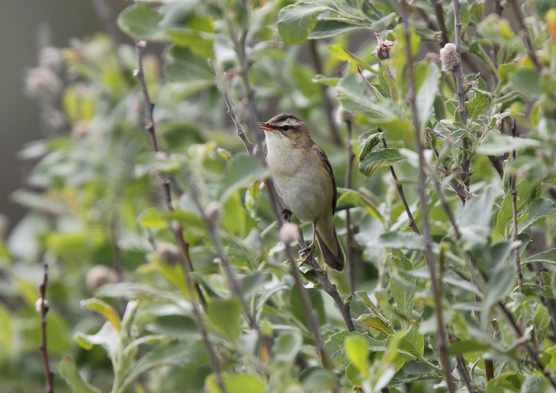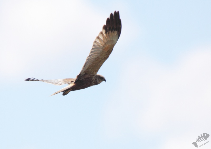 Normaal gesproken vliegen zij al weg wanneer ze me nog niet eens zien, maar deze lieten zich aardig benaderen en vlogen om me heen. Ik ben stil gaan zitten en heb een aantal aardige foto’s kunnen maken. Ik ben verder gegaan en kwam nog een Braamsluiper tegen. Deze zat wat verder van het pad zijn ratel op te voerén in de struiken, maar ik kon hem aardig zien. Toen zag ik ook ineens een Bruine Kiekendief. Ik ben nog wat verder gelopen en ben tegen een composthoop gaan zitten. De Kiekendief bleef met name in de verte boven de duinen jagen, maar kwam toch ook heel even mijn kant op en vloog laag over. Ik had zijn beweging aan zien komen, maar kon toch niet snel genoeg reageren om hem mooi vast te leggen, maar een aantal plaatjes heb ik wel gemaakt. In de tijd dat ik op de Bruine Kiek zat te wachten, kwam er ook nog een Wulp langs, maar verder bleef het rustig. Na een paar uurtjes ben ik weer terug naar mijn fiets gelopen en kwam onderweg nog een Rietzanger tegen. Ondanks het gemis aan de Blauwe Kiekendief, werd het onder andere door zijn Bruine neef nog een leuke dag!