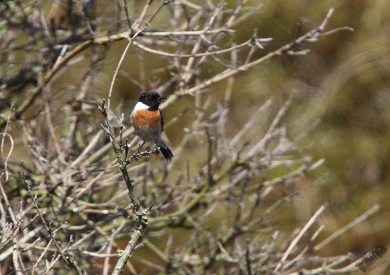 Vandaag had ik tot doel gesteld om het mannetje van de Blauwe Kiekendief te gaan zien en mooi op de foto te krijgen… Ik ben de het gebied de “Koegelwieck” in gelopen en ben door de duinen gaan wandelen. Het was prachtig weer, het waaide wel behoorlijk, maar verder was het ideaal. Ik kwam alleen niet zo heel veel vogels tegen. Op een bepaald moment hoorde ik een bekend deuntje: er zat een Roodborsttapuit te zingen.