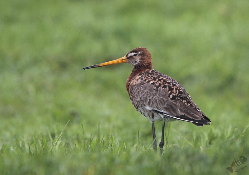 ´s Middags ben ik naar de Wadden kant gereden. Op een aantal plaatsen ben ik de dijk over gegaan. In eerste instantie zag ik niet zoveel, maar bij Seerijp in de buurt over de dijk zaten wat steltlopers. Er zaten verschillende Steenlopers, er vlogen wat Tureluurs rond en Kluten. Op het water zaten Eiders en een Kleine Mantelmeeuw. Weer terug in de polder bij Midsland zaten heel veel Grutto´s, ook weer Tureluurs, Scholeksters en Kluten. Er liepen ook nog Bergeenden en er vlogen heel veel Boerenzwaluwen. Ik heb daar rondgereden, waarbij ik regelmatig belaagd werd door opgewonden Grutto-ouders die hun jongen aan het beschermen waren. Ik ben weer richting huis gegaan, nog altijd zonder Blauwe Kiek… ’s Avonds, toen we op weg waren naar de “Rustende Jager”, vloog er een grote vogel voorbij die lastiggevallen werd door een groep meeuwen. Toen ik goed keek, bleek het een mannetje Blauwe Kiekendief te zijn! Natuurlijk had ik geen spullen meer bij me om het vast te leggen, maar ik heb hem in ieder geval even gezien…