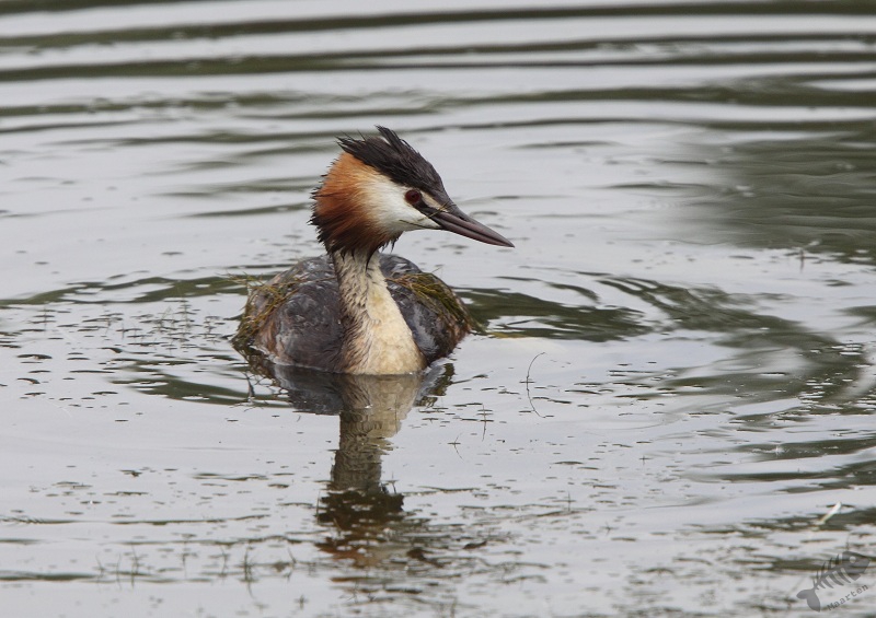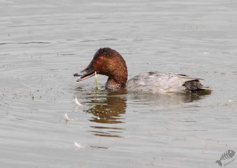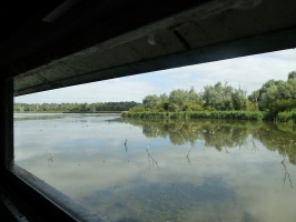 Aangekomen bij de hut, bleek ik er alleen te zitten. Voor eventjes was het er heerlijk rustig, mooi uitzicht over de plassen: laat de IJsvogeltjes maar komen! Al snel bleek de hut een populaire plek te zijn. Er kwamen verschillende mensen op de fiets binnen, maar nadat ze gesettled waren, werd het weer betrekkelijk rustig. Helaas bleek 1 van de bezoekers een andere kijk op natuurbeleving te hebben als ik en vond het normaal vogels te lokken met hun geluid. In mijn optiek moet je dat niet doen, zeker niet in een tijd dat de vogels druk zijn met het groot brengen van hun jongen. Na een korte discussie hierover, ben ik maar gegaan. Ik had inmiddels zo’n 3 uur in de hut vertoefd en vond het ook wel weer tijd ergens anders te gaan kijken. In die 3 uur heb ik geen IJsvogels gezien, maar wel verschillende eenden: Slob- en Krak en Tafel. Ook zaten er Aalscholvers verderop de plas en in de verte verschillende Grote Zilverreigers. Op het laatst zwom er een Dodaars om de hut en een Fuut en kwam 1 van de Grote Zilverreigers in de buurt zitten.