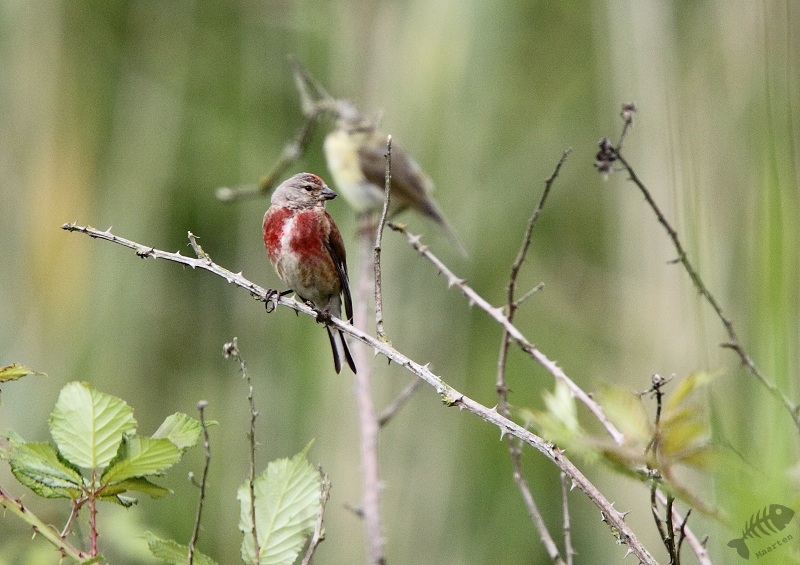 Op de terugweg naar de auto trof ik een jonge Roodborst en zat er een “Landkaartje” in het gras. Een Kneutje zat behoorlijk dichtbij op de plek waar ik ze op de heenweg ook had gezien.