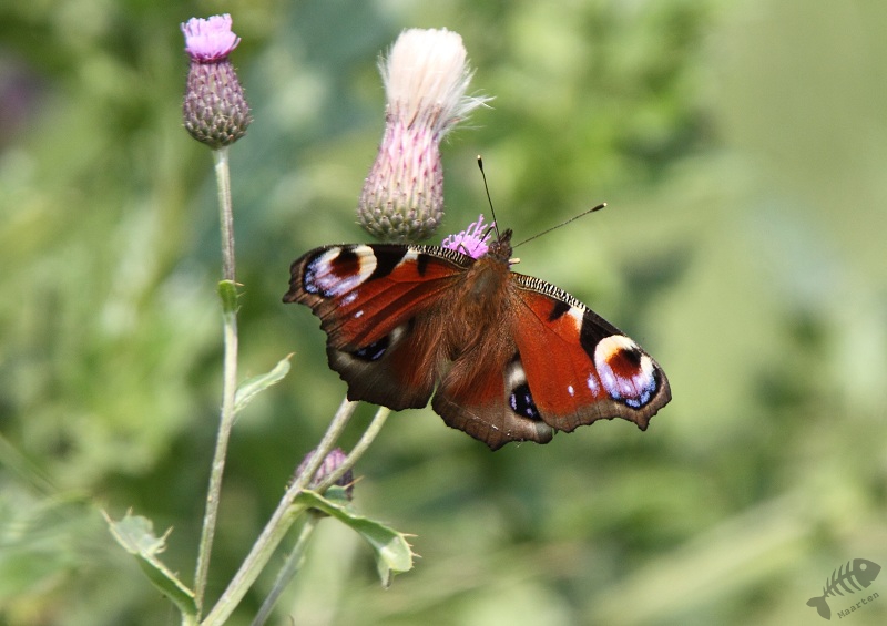 Vanuit de hut hoorde ik van alles om me heen: Putters (waarvan er 1tje heel kort precies voor de hut vrij kwam zitten: ik was te laat…), Kneutjes en Groenlingen, Grauwe Vliegenvangers en Kleine Karekieten en er kwam een Fitis eventjes heel mooi zitten. Vanuit de hut heb je uitzicht over een groot gebied van de plassen waar honderden Ganzen, Kieviten en andere waaders zitten.
