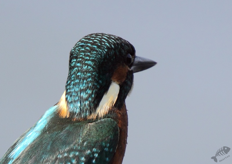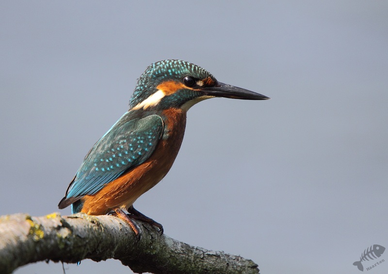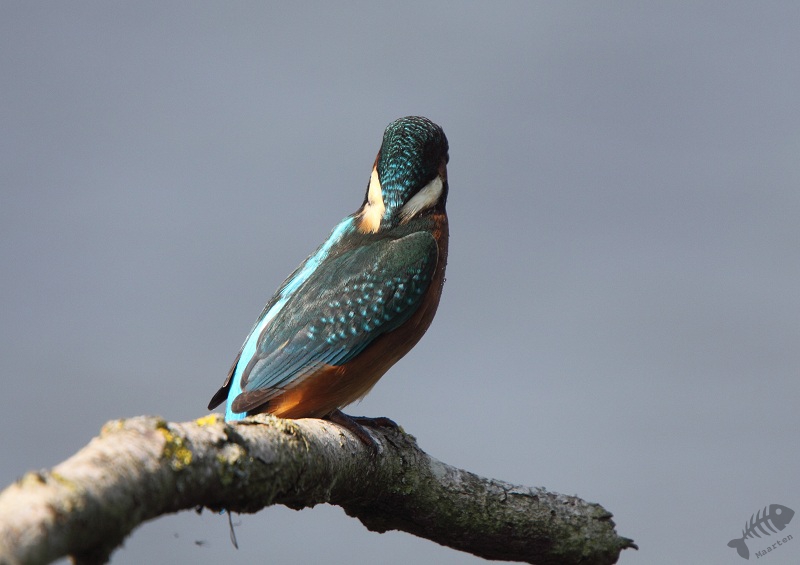 Ik had me al voorgenomen weer naar de “Poelruiter” te gaan, maar toen ik de eerder genoemde fotograaf weer tegen was gekomen wist ik zeker dat ik het nog een keer moest proberen. Er bleken weer 2 fotografen te zitten en zij hadden hem nog niet gezien. Ik heb me weer geïnstalleerd en ben maar weer gaan wachten. Na verloop van tijd vertrok de 1ste fotograaf en een uur later of zo de 2de. Hij had er ruim 2 uur gezeten en niks gezien. Ik had bedacht nog een kwartiertje te wachten en dan moest ik ook gaan. Binnen 10 minuten verscheen er ineens weer een IJsvogeltje. In eerste instantie vloog hij weer verder weg en ging daar uitgebreid vissen: hij vloog laag over het water en dook er af en toe in. Maar ineens kwam hij op me af en ging hij op het takje zitten! Daar was hij dan eindelijk. Hij vloog even naar beneden alsof hij iets ving, maar vloog helaas weer weg. Ik heb aardig wat opnamen kunnen maken, op sommigen zie je nog waterdruppeltjes aan zijn veren hangen.