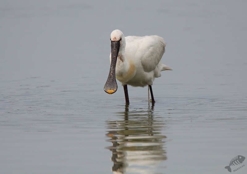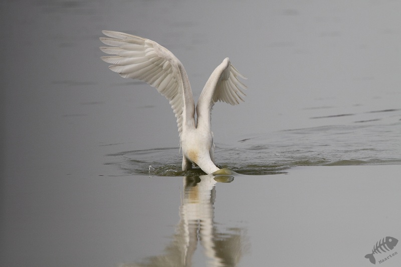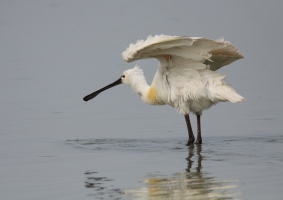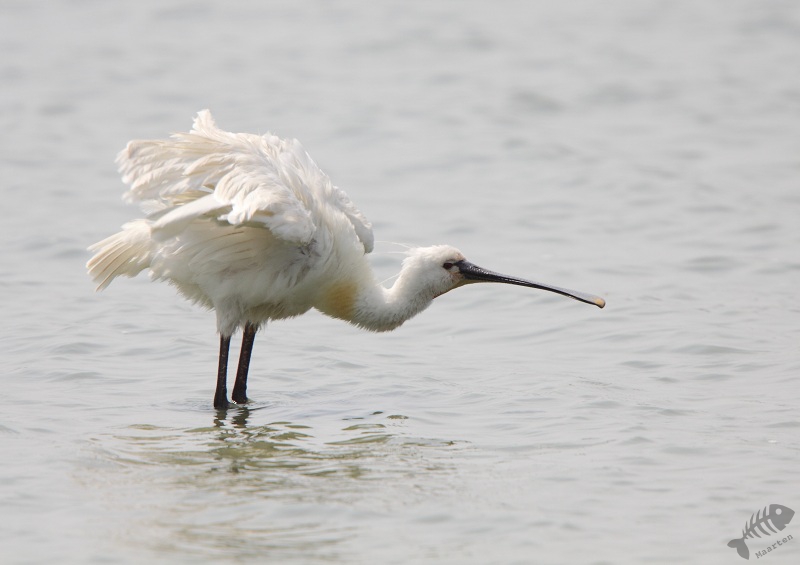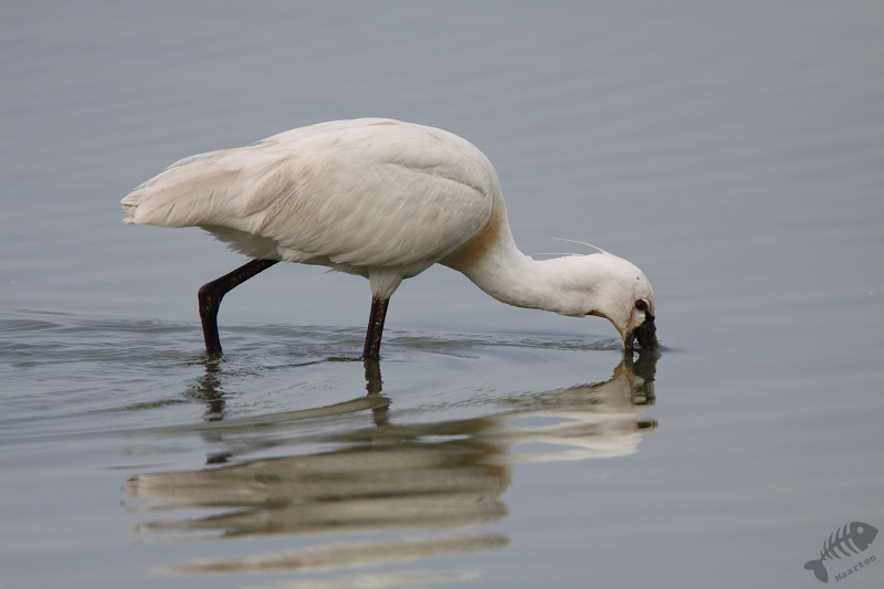Zoals altijd ben ik als eerste weer naar de “Kluut” geweest. Daar was een Lepelaar druk aan het foerageren. Met zijn snavel in het water ging hij met zijn kop van links naar rechts en liep hij langzaam rond. Af en toe zat hij blijkbaar achter iets aan en trok hij met zijn kop in het water een sprintje. Wanneer hij iets ving, werd dit opgegooid en ving hij het met zijn snavel. Dit alles was erg leuk om een keer zo goed te kunnen bekijken.