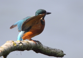 In plaats van de Lepelaarplassen ben ik naar de Oostvaardersplassen gegaan om de IJsvogel te zoeken. Vorig jaar heb ik er daar 1tje bij de “Poelruiter” kunnen fotograferen en ik wilde proberen of ze er misschien weer zaten. Dus ben ik als eerste naar deze hut gereden. Toen ik er aankwam, bleek dat er nog 2 fotografen zaten te wachten. Zij hadden inderdaad al een IJsvogeltje gezien, maar deze bleef hele tijd op grotere afstand. Ik heb mijn spullen opgebouwd en ben ook gaan zitten wachten. Ik heb het IJsvogeltje in de verte zien vissen vanuit een overhangende Wilg, maar hij kwam niet dichterbij, totdat hij ineens onze kant opvloog en in een Wilg aan de zijkant van de hut ging zitten. Mijn collega’s stonden er daar beter voor en konden een aantal aardige plaatjes maken. Mij lukte het ook wel, maar eigenlijk was het net te ver. Na een minuutje ofzo, vloog hij weg over de hut en heeft zich niet meer laten zien.