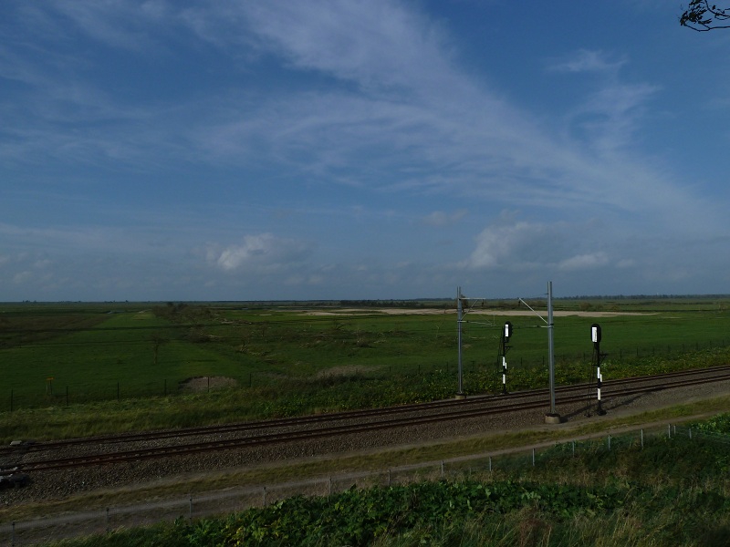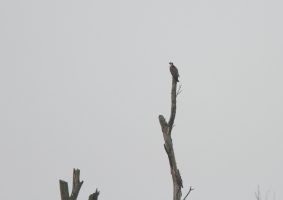 Vanaf de Praambult het uitzicht over heel het gebied, maar veel vogels waren er niet te zien. Op de weg terug zaten er (natuurlijk) Grauwe Ganzen in het Oostvaardersveld en de Buizerd van een paar dagen geleden zat er ook.