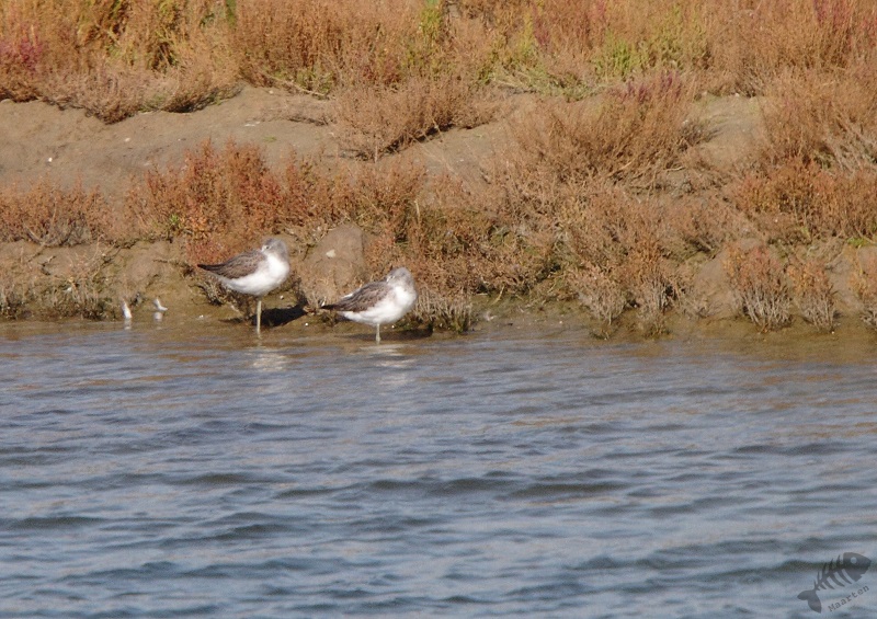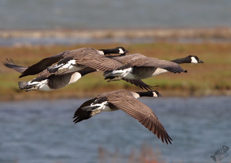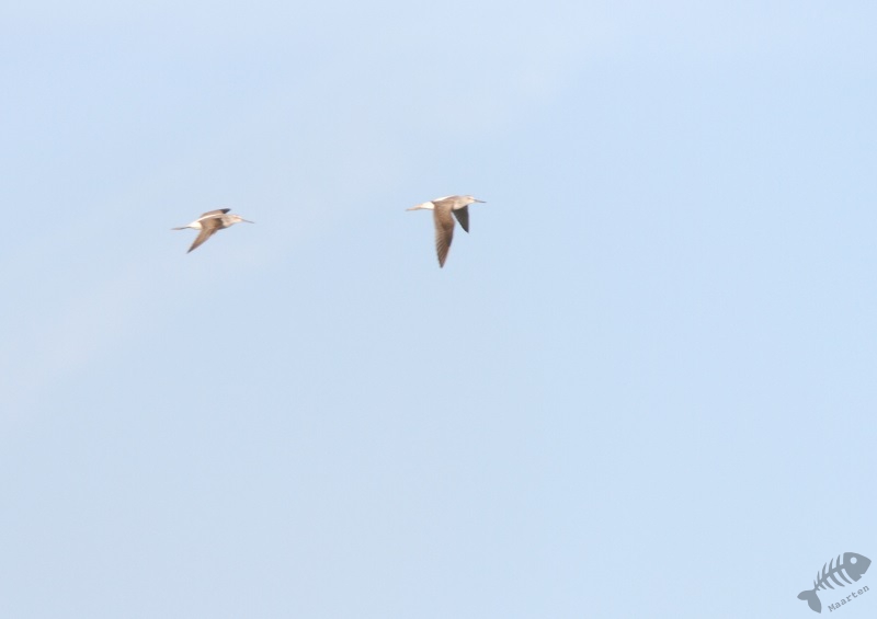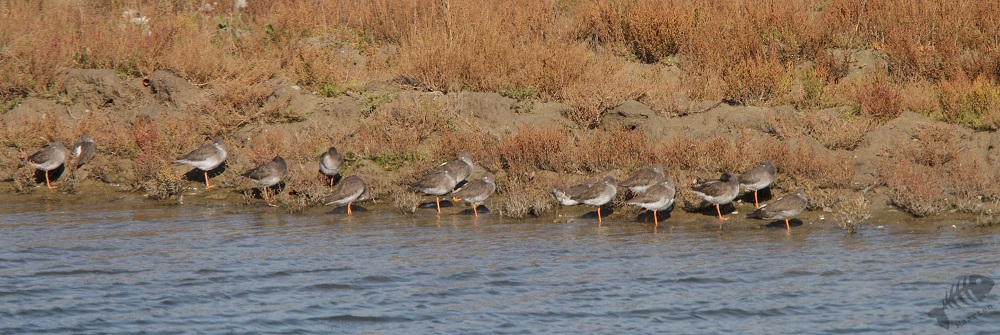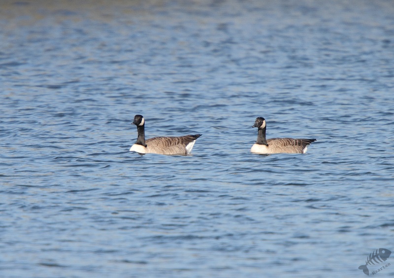 Ik ben verder langs de dijk gereden en ben gestopt bij een observatiehut. Vanuit hier zou je in het voorjaar uitzicht hebben op een kolonie Dwergsternen, maar nu was het vrij rustig. Er zaten wat Tureluurs in de verte en ook een enkele Groenpootruiter. Een groep Canadese Ganzen welke aan kwam vliegen verstoorde de rust enigszins, maar nadat ze geland waren keerde de rust weer.