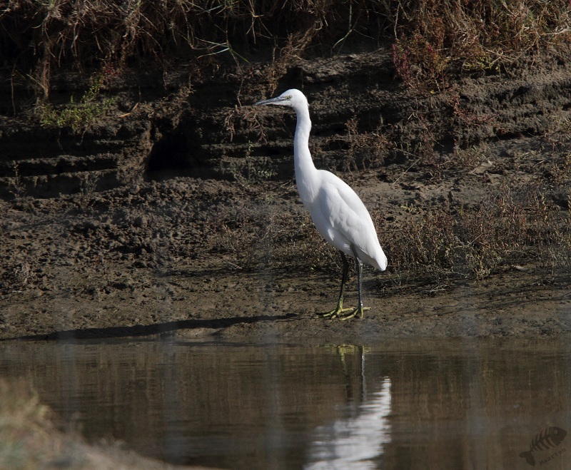 Ik ben weer teruggelopen en trof nog een Kleine Zilverreiger in 1 van de geulen die door het gebied lopen. Ik heb nog eventjes zitten twijfelen of ik naar het “Zwin” zou gaan. Dit is een natuurgebied op de grens met België, waar ik in het verleden ook eens geweest was. Omdat het al wat later werd heb ik het niet gedaan, maar ik denk dat ik zeker een keer terug moet in het voorjaar en het dan ook meeneem…