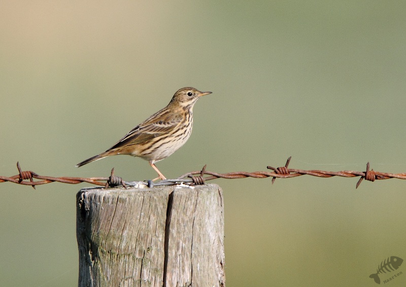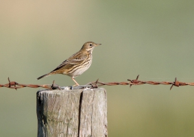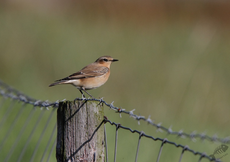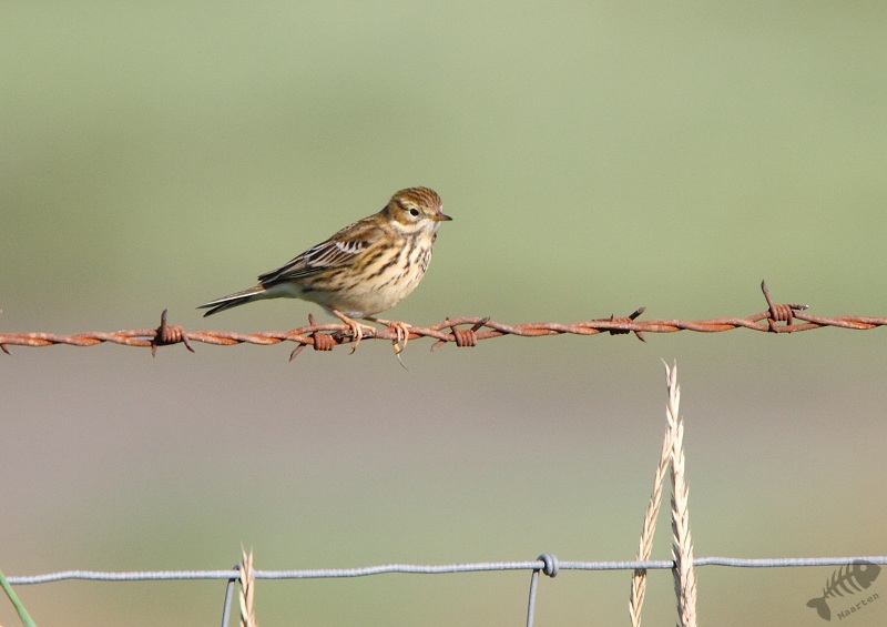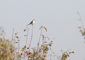 Het was in ieder geval weer een prachtige dag en het was leuk om een keer in het gebied te zijn waar ik vroeger wel van gehoord heb. Je kon mee met een excursie, maar daar waren onze schoenen niet helemaal op berekend, dus hebben we het vlonderpad afgelopen. Omdat het gebied zo open is, lieten de vogels zich niet zien. Toen ik later weer terug op de dijk was, zag ik in de verte een vrouwtje Blauwe Kiekendief op haar kenmerkende manier aan het jagen. Verder zaten er Graspiepers op het hek en 1 vogeltje maakte me een beetje in de war. Ik dacht een Frater te zien, maar toen ik thuis was, heb ik het toch maar even nagekeken en bleek dat het dat niet kon zijn. Bij nader inzien was het het vrouwtje van de Rietgors. Ze zag er toch weer net even anders uit dan dat ik me herinnerde uit het voorjaar.