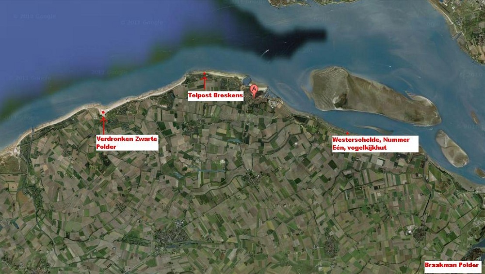 Weer verder. Ik had gelezen over een telpost bij Breskens van waar af wel eens leuke waarnemingen gedaan werden. Het duurde eventjes, maar ik heb hem gevonden. Helaas was de situatie iets anders dan ik mij had voorgesteld: zonder telescoop was er niet heel veel te zien en ik ben dan ook maar snel weer verder gegaan.