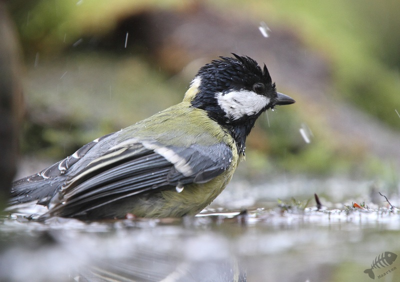 Het bleef verder vrij rustig. Wat wel leuk was, was te zien hoe de verschillende vogels kwamen baden. Ik heb leuke foto’s kunnen maken van de verschillende soorten drukdoende een bad te nemen.