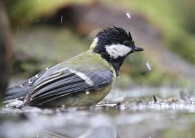 Daarna ging het weer verder met de soorten welke er de hele tijd zaten, maar er verschenen ook andere soorten zoals een Winterkoninkje welke heel dicht voor me ging zitten en een Heggenmus die ik al een tijdje in de buurt gehoord had. Een koppeltje Merels en Grote Bonte Spechten kwam ook regelmatig wat drinken en eten net als een Roodborstje en een Gaai (voorheen Vlaamse Gaai, maar ik geloof dat Gaai tegenwoordig de officiële naam is…).