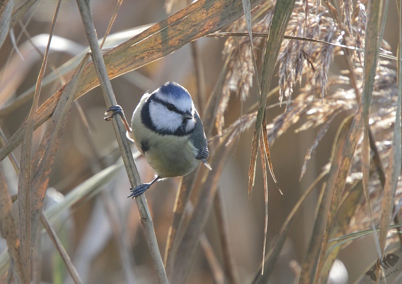 Omdat er verder ook niets op het water zat, ben ik snel naar de volgende hut gelopen: de Keersluisplas, dan zou het waarschijnlijk hier zijn geweest. Maar nee: het Riet stond hier, zo mogelijk, nog hoger en vanaf hier zag je echt helemaal niets. Wel hoorde ik achter me allerlei geluiden: in het Riet een soort geknabbel, wat een Pimpelmeesje bleek te zijn, maar ook gespetter en andere geluiden. Ik hoopte dat het misschien een Waterral zou zijn, maar na even verscheen de badderaar: een Merel had tussen het Riet een bad zitten nemen wat ik dus gehoord had.
