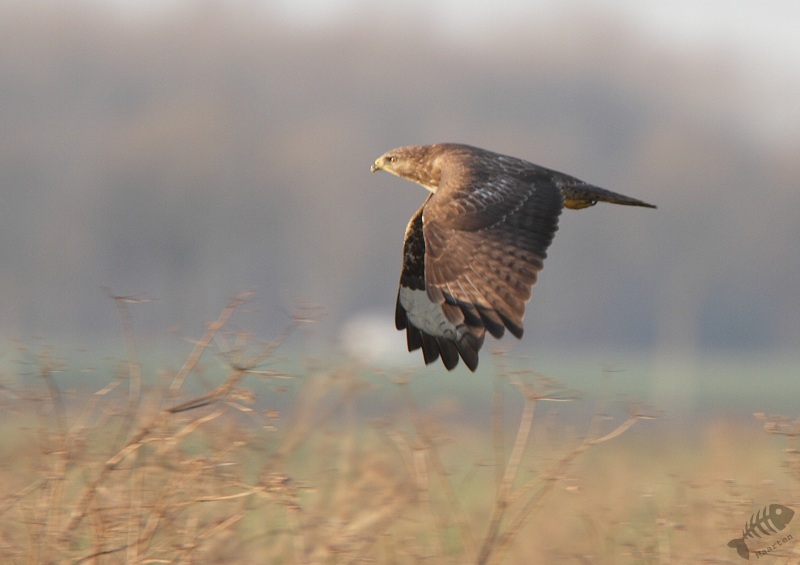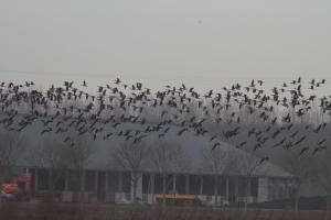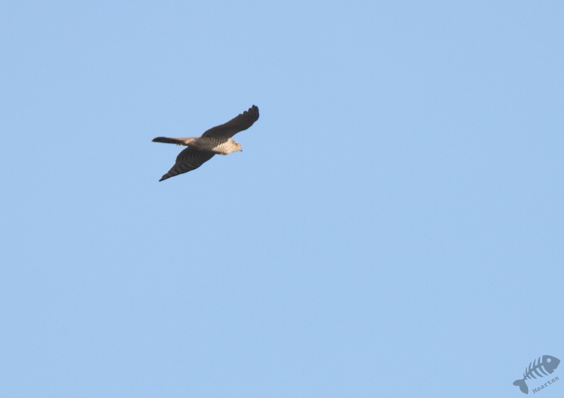 Ik ben weer verder gelopen naar de Keersluisplas. Het riet stond er nog steeds hoog en ook hier was dus niets te zien. In het bosje ervoor zaten wel weer Goudhaantjes welke ik heel vluchtig alleen even gezien heb en er zaten verschillende Mezen: Pimpeltjes-, Kool- en Matkopjes. Het lukte me om van de laatste een paar foto’s te maken en daarna ben ik weer verder gegaan richting Wigbels Eiland, maar als eerste naar de Brandgans. Opweg er naar toe hoorde ik verschillende Buizerden in het Wilgenbos. In de verte zag ik er ook vliegen, en vrij plotseling vloog er ook eentje niet ver over mij heen. Als je ze zo ziet blijven het imposante vogels. Iets later zag ik ook opeens een Sperwer op me af komen, maar deze kwam zo snel aan, dat mooie foto’s niet gelukt zijn.