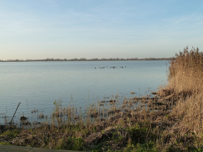 Hierna ben ik naar de Oostvaardersplassen gereden. Bij de Kluut kon ik nog steeds niet helemaal zien waar de foto’s van de Watersnippen gemaakt waren. Op het water zat ook niets, dus ben ik maar verder gegaan. Bij het bezoekerscentrum heb ik ook nog even staan kijken en wat bleek: door de gaten in de schutting daar, zag ik hetzelfde als er op de foto’s van de Snippen te zien was. Waarschijnlijk waren ze dus hier gemaakt! Jammer genoeg zat er nu niets, maar ik zal de plek zeker onthouden en er vaker gaan kijken.