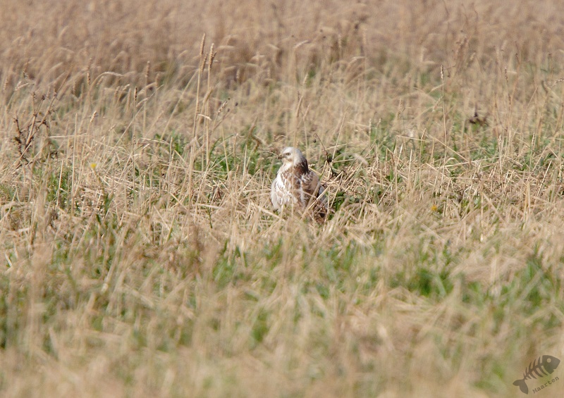 In de tijd van 15 uur tot ongeveer 16.30 vloog er de ene keer een Buizerd de andere keer een Blauwe Kiekendief en dan weer een Ruigpoot voorbij. Ter afwisseling en vermaak stonden er ook nog 2 Blauwe Reigers in het veld.