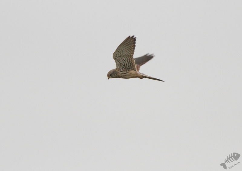 In het begin was het weer rustig. Ik zag wel vrij snel van alles vliegen, maar het bleef allemaal op afstand. Uiteindelijk kwam als eerste toch een Blauwe Kiekendief op fotografeerbare afstand. Vervolgens verscheen er een Ruigpootbuizerd en vlak daarna een “gewone” Buizerd. Deze allemaal in ongeveer 20 minuten tijd! Nadat het een tijdje rustig was, vloog er ineens een soort spookverschijning recht op me af… Het bleek een hele blonde Buizerd te zijn. Deze had ik hier nog niet eerder gezien. Jammer genoeg bleef hij op redelijke afstand, maar het was toch wel mooi hem even goed te bekijken. Even na deze Buizerd kwam er ook een Torenvalk ten tonele die zich af en toe liet zien. Ik heb haar een aantal keer zien bidden en stoten, wat echt een fascinerend gezicht is!