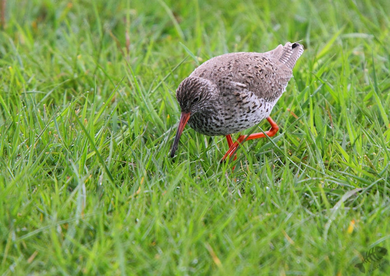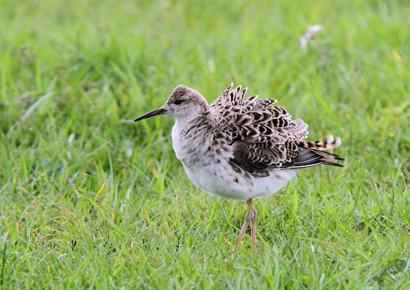 In plaats van mist, regende het nu! Het licht was wel heel mooi en dit kon ik direct uitproberen met weer een nieuwe soort: er scharrelde een groepje Ringmussen op een veldje en deze kwamen tot op een paar meter. Een hele leuke voortzetting! Verderop poseerde een Spreeuw heel fraai en een koppeltje Boerenzwaluwen ging karakteristiek op een draad zitten. In het gras liepen weer de nodige Grutto’s en Tureluurs en tot mijn grote voldoening ook weer het vrouwtje van de Kemphaan. Met dit licht kwam ze veel mooier tot haar recht dan in de mist. Verderop in het weiland stand nog een Kemphaan. Toen ik beter keek bleek dit een mannetje te zijn welke helaas zijn baltskleed grotendeels kwijt was.