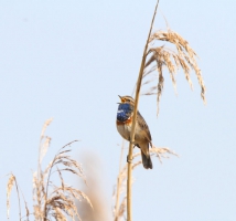 Mijn ontmoeting met Ruben vorige keer had me geïnspireerd en ik heb het ook eens gewaagd een filmpje te maken. En eigenlijk ben ik best tevreden! Het is lastig omdat de automatische scherpstelling niet werkt, maar de vogel en zijn zang staan er duidelijk op. Op de bladzijde “filmpjes” is het resultaat te zien. Onderweg naar de Schollevaar kwam ik nog 2 zingende mannetjes tegen en op het pad naar de hut ook nog één. Terwijl ik daar liep moest ik aan de kant voor een jeep die het pad afreed. Hierin bleken Ruben en een collega te zitten en ze stopten nog even voor een praatje. Ik maakte ze een compliment over de trailer voor de film en de filmpjes uit de uitzendingen van Vroege Vogels en ze leken het oprecht leuk te vinden dit te horen. Ze wensten me succes verder (met de Blauwborsten), waarna ze verder gingen.