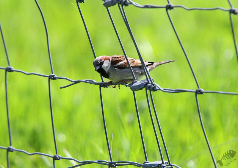 Ik ben na zo’n half uur en nog enkele opnamen van de Rietzanger weer gegaan. Ik wilde in de Arkemheense polder gaan kijken of ik de Gele Kwikstaart ook bij zonlicht kon krijgen. Toen ik er aankwam scheen de zon inderdaad volop, maar de Kwikstaarten waren nergens te bekennen. Omdat ik al aardig wat foto’s van Grutto’s en Tureluurs had, ben ik maar naar het gemaal gereden om daar eens te kijken. Ook hier zaten verschillende Ringmussen met een enkele Huismus, maar verder was het rustig.