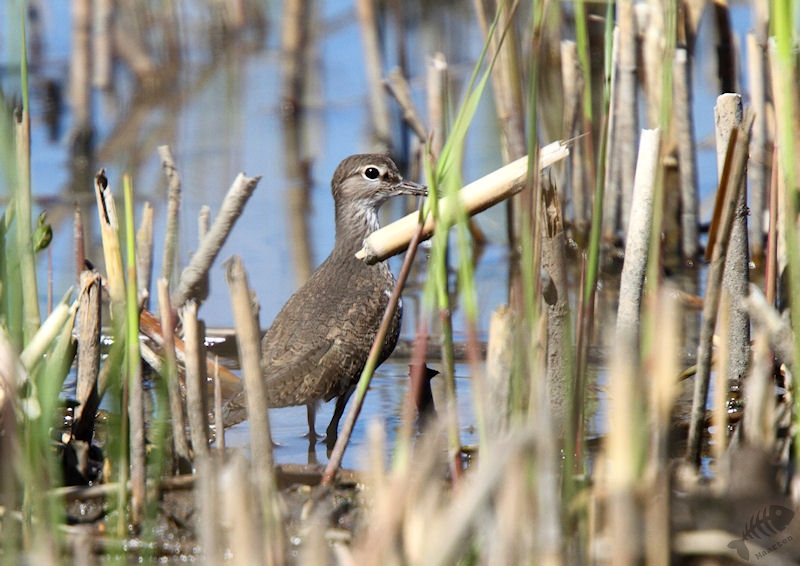 Vanuit de hut was verder niet zoveel te zien. Op het pad terug, tussen de struiken, was nog wel het één en ander te horen en te zien. Met name enkele Tuinfluiters en Fitissen waren zo druk met zingen en foerageren dat ze mij nauwelijks in de gaten hadden en ik ze mooi vast kon leggen. Ik ben weer richting de uitgang gelopen en toen ik weer over de bruggetjes was, zat de inmiddels bekende Blauwborst weer volop te zingen. Ik kon het niet laten hem ook nog te bewonderen en vast te leggen. Bij de hut aan de Keersluisplas ben ik ook nog even wezen kijken. Ik hoop nog altijd op een vrije Watersnip, maar vond er nu iets anders: er scharrelde 2 Oeverlopers rond! Ik had deze nog nooit eerder weten te fotograferen, dus ben ik een tijdje in de hut gebleven om af te wachten dat ze een beetje vrij kwamen zitten. Dit was bijna het geval en na zo’n 100 foto’s ben ik weer naar de auto gegaan en naar de Grote Zilverreiger gereden. Onderweg vloog er nog een Bruine Kiekendief over de plassen voor Lelystad, en bij de parkeerplaats zaten verschillende Visdiefjes op de paaltjes in het IJsselmeer. Ik heb deze voorzichtig benaderd over de pier en heb een paar leuke foto’s kunnen maken van deze schreeuwerds.