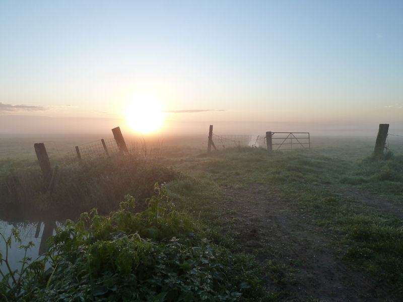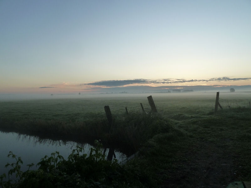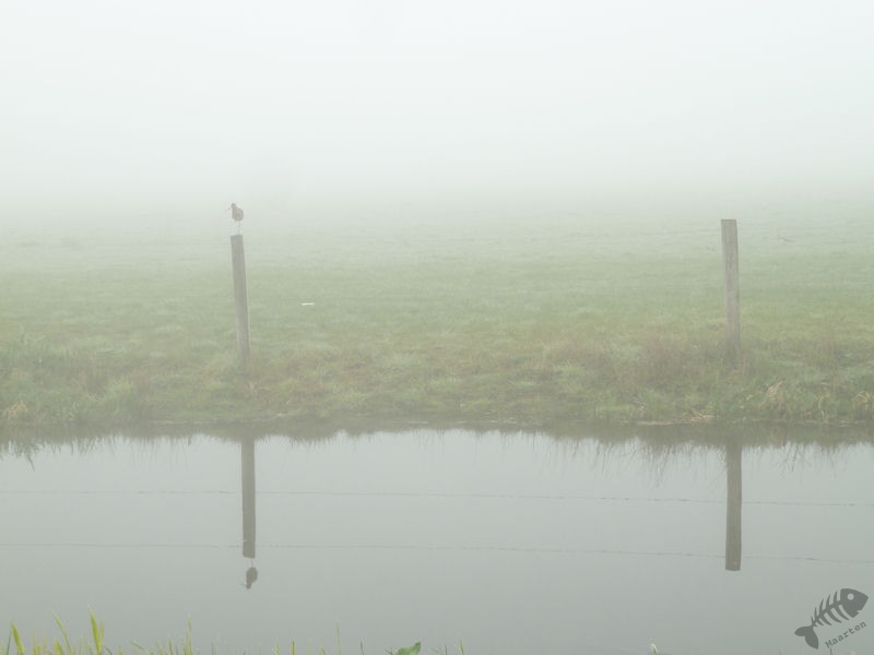Zodoende ben ik om half 7 aangereden en de lucht voorspelde niet veel goeds: het was mistig. Onderweg kwam af en toe de zon door, maar toen ik Nijkerk uitreed, zat het behoorlijk dicht. Toch ben ik doorgegaan en kwam in een stille, mistige polder aan.