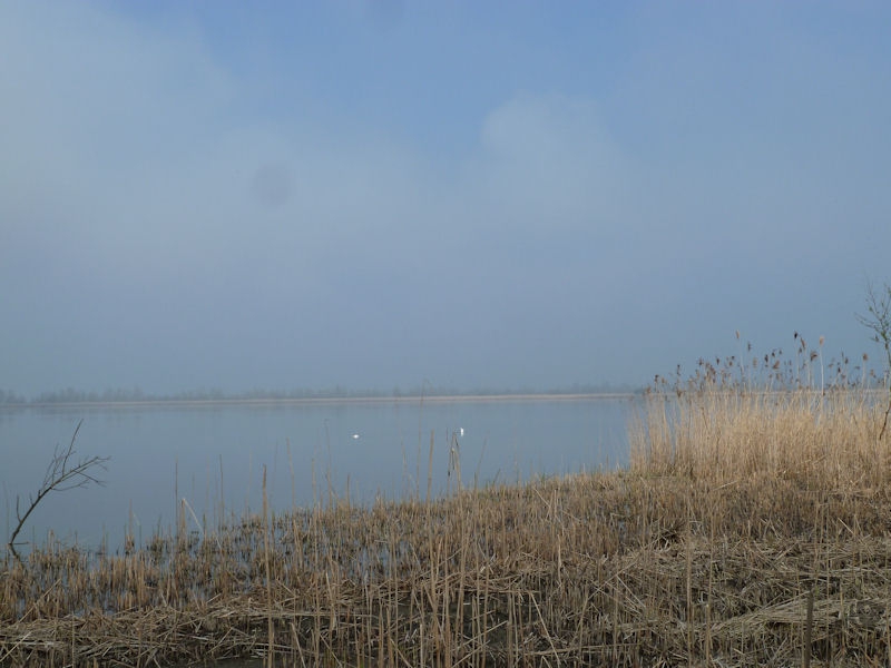Om half 10 zat ik weer in de hut aan de Keersluisplas. De mist trok op en er kwam een heel mooi, rustig licht voor in de plaats.