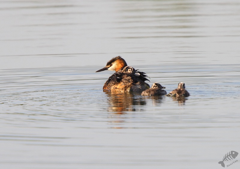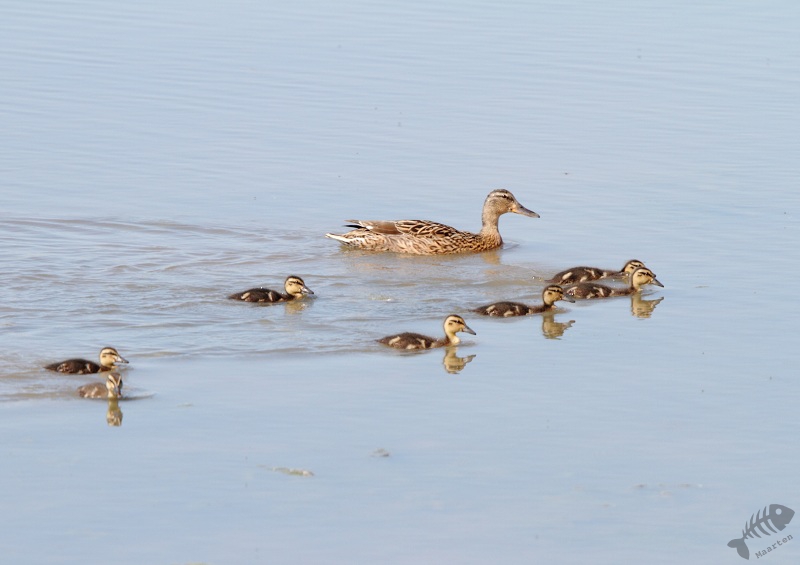 Ik ben doorgelopen naar het houten bruggetje om de geul over te steken en heb daar even staan ontbijten in het gezelschap van een Fuut met jongen en een paartje Knobbelzwanen. Ook hoorde ik overal Koekoeken en vlogen er Visdiefjes en Gierzwaluwen rond.