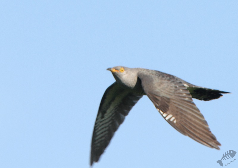 De Koekoeken hoorde ik de hele tijd al roepend rondvliegen tussen een bomenrij en de struikenrij waar ik stond. Ze lieten niet alleen het alom bekende “koekoek” horen, maar ook hun kenmerkende “lachen”. Ik wilde graag eens een goede foto van deze soort, dus ik ben tussen de struiken gaan staan (en tussen de muggen) en heb een tijd staan wachten op wat zou komen. Verschillende keren lieten de Koekoeken zich goed zien. Het bleek alleen erg lastig om ze vast te leggen: vaak zag ik ze net te laat, focuste het toestel niet goed of waren ze gewoon te snel. Op een bepaald moment kwam er ook ééntje achter me zitten, op ongeveer 4 meter afstand, maar dit was weer tegen de zon in! Het was erg spannend, maar mooie/goede plaatjes heeft het niet opgeleverd. Volgend jaar opnieuw?