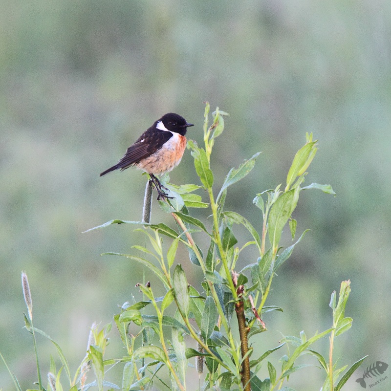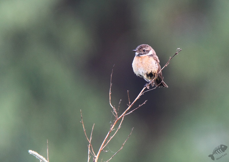 Achter mij hoorde ik de roep van een Roodborsttapuit. Ik zag het mannetje en vrouwtje en beide bleven even mooi zitten.