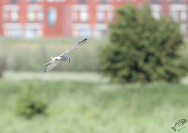 Weer terug bij de brug vloog er een Visdiefje heel mooi laag over (wat met 400 mm wel makkelijker vast te leggen is…) en zaten er nu ook weer Gierzwaluwen en Oeverzwaluwen. Als extra vloog er een Aalscholver over, waarna ik weer naar de Bennekomse Hooilanden ben gereden en ook nu weer een Gele Kwikstaart kon vastleggen, al was het wel op iets grotere afstand.