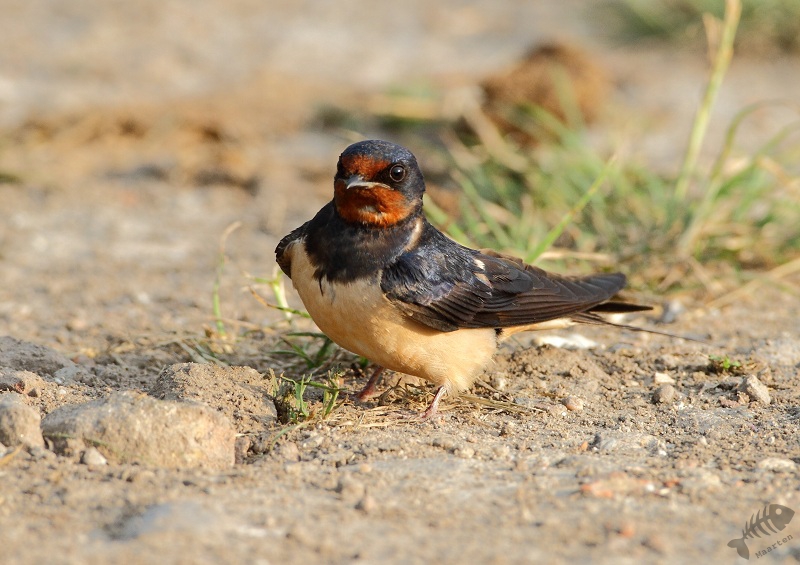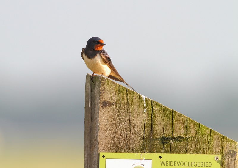 Bij de t-splitsing rechtsaf en die weg ingereden. Al snel zag ik hier een Boerenzwaluw op een paal. Dit was weer eens wat anders dan prikkeldraad, dus ook hier weer de nodige foto’s gemaakt. Tot mijn verrassing kwam er op de grond onder de eerste Zwaluw een tweede zitten welke steentjes begon te eten. Ik kende dit wel van andere vogels, maar niet van Zwaluwen: zo blijkt dat je altijd weer wat kunt leren.