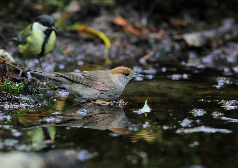 Natuurlijk waren de Mezen weer goed vertegenwoordigd: Glanskop, Kool- en Pimpelmees. Ook bij deze hut kwam een Grote Bonte Specht langs en zaten er Vinken en Winterkoninkjes. Gelukkig bleken er ook nog Zwartkoppen te zitten (het dramatische einde van één van hun soortgenoten weerhield de anderen er blijkbaar niet van bij dit plasje te komen drinken en baden) en was er heel even een Tjiftjaf. Met het noemen van de Houtduif, Roodborst en Zanglijster is de lijst met vogelsoorten compleet. Met de Eekhoorn en Bosmuis is de hele lijst compleet.