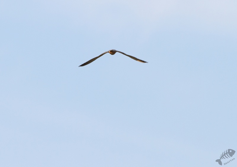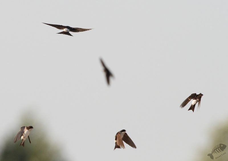 Hierna ben ik deze kant van de polder weer uitgereden en naar de boerderij met de Zwaluwen gereden. Ze zaten er volop en ik ben, misschien wel weer tegen beter weten in, weer begonnen ze vliegend vast te leggen. Tussen alle gemaakte foto’s zaten 1 of 2 aardige plaatjes, waarvan er 1 een soort “time-lapse” opname van Huiszwaluwen bleek te zijn geworden. Toen alles wegvloog en verder weg leek te gaan jagen, bleek het een typisch staaltje van: “jammer, net te laat” te zijn. Er passeerde een Boomvalk en het enige wat ik nog net vast kon leggen was zijn rode broek…