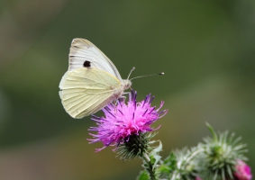 Toen ik terug was bij de auto ben ik naar het bezoekerscentrum gereden. Ik hoopte in het “park” nog wat te zien, maar dat viel wat tegen. Het bleef beperkt tot een Grauwe Vliegenvanger (wat ik niet eens helemaal zeker weet, omdat ik me het geluid niet kan herinneren en de strepen op de vogel mis) en een Koolwitje. Bij de Kluut zwom nog een vrouwtje van de Slobeend voorbij, waarna ik maar weer in de auto ben geklommen en naar het IJsselmeer ben gereden. Ook daar was het rustig. Aan het water zaten Sternen, wat Zwarte Sternen bleken te zijn (al waren ze helemaal wit op een zwart kapje na) en een Stormmeeuw. Langs het pad naar de Grote Zilverreiger hoorde ik af en toen wel wat, maar ik kreeg niks in beeld. Bij de hut zaten wel weer volop Boerenzwaluwen en daar bleef het zo’n beetje bij.