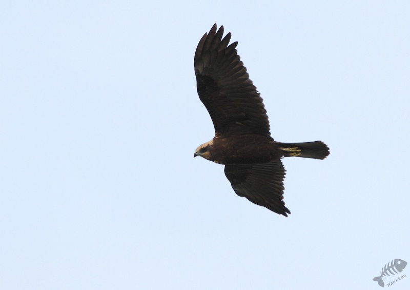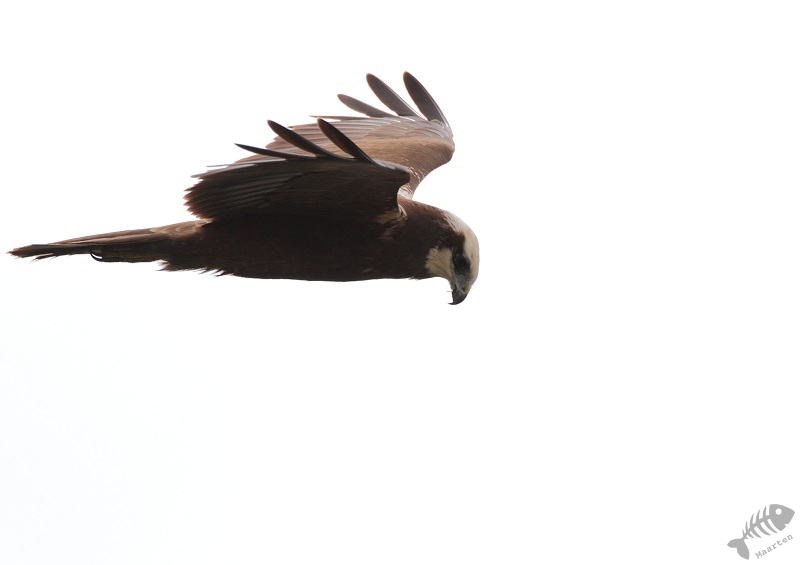 Toen ik weer bij de bruggetjes wasvloog er vanuit de verte ook weer iets op me af. Alweer een vrouwtje van de Bruine Kiekendief. In eerste instantie leek zij wel op grotere afstand te blijven, maar op een bepaald moment was ze toch weer behoorlijk dichtbij. Wat geweldig!