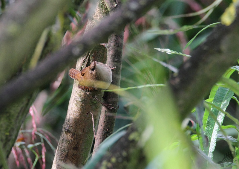 Na een tijdje vloog nog even de Bruine Kiekendief in de verte voorbij en daar bleef het bij. Ik ben dus weer verder gegaan en bij het begin van het pad naar Wigbels Eiland was het druk geworden. In de haag zaten verschillende kleine druktemakers: een groep Staartmeesjes, Matkopjes, Kool- en Pimpelmeesjes, een Grasmus, een Winterkoninkje en een Puttertje. Eén van de Staartmeesjes leek zo druk dat hij mij niet in de gaten had, waardoor ik hem goed kon benaderen. Toen de Grasmus en Pimpelmees dat goed afgekeken hadden, bleven ook zij even mooi zitten en leverde dat ook mooie plaatjes op.