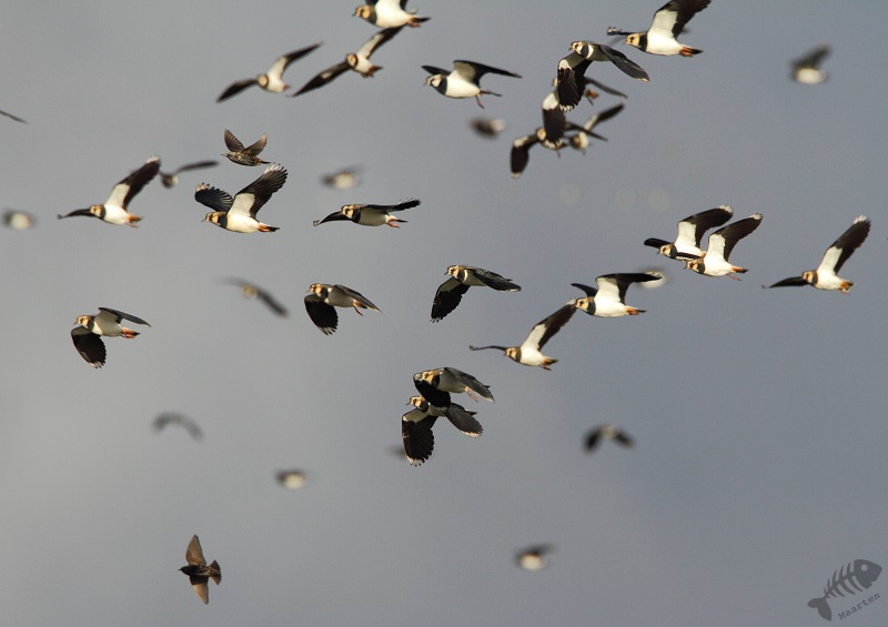 Heel veel heb ik niet gezien. Bij een grote vaart zat een heel grote hoeveelheid Smienten. Ook zaten er veel Kieviten en Spreeuwen. Ik ben doorgereden tot Bunschoten en daarna weer omgedraaid, de polder in. Ik had al eerder een Torenvalk wijfje gezien en kwam haar nu weer tegen. Ik heb de auto neergezet en afgewacht wat ze zou gaan doen. Ze kwam steeds dichterbij tot ze op een heel redelijke afstand stond. Helaas was het zo’n beetje recht tegen de zon in, dus waren de foto’s slechts suboptimaal…