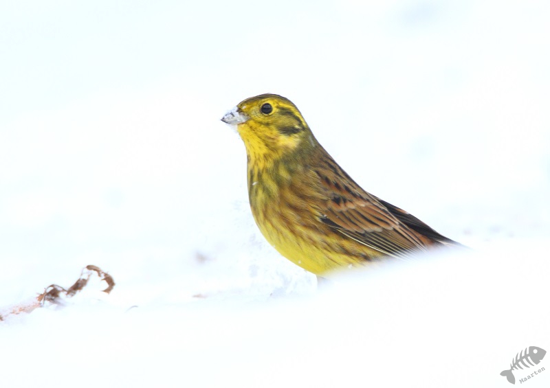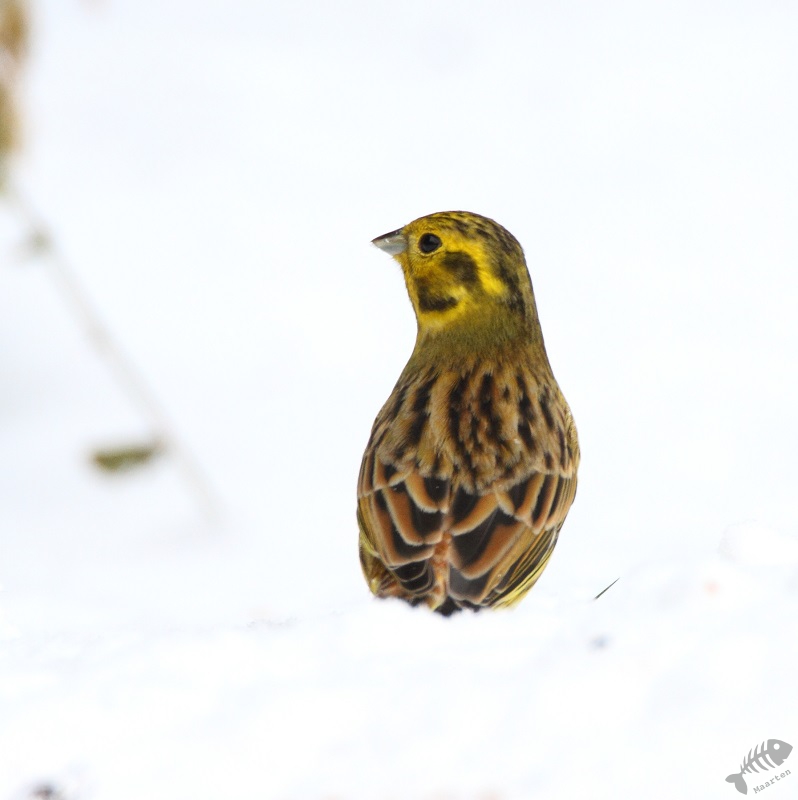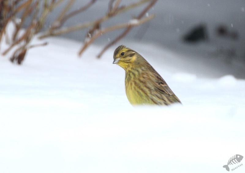 De volgende dag viel ik eerst weer in een enorme verbazing: alle eerder genoemde soorten kwamen weer langs, zelfs de Appelvink, maar ook verschenen er nu 3 Geelgorzen! Dat had ik in deze omgeving helemaal niet verwacht. Ook deze heb ik vanuit huis kunnen vastleggen, waarna ik verschillende plekken en mogelijkheden met het kleed ben gaan proberen. De vogels voelden blijkbaar allemaal toch nattigheid, want ze bleven en masse weg. Ik heb het maar niet te lang gedaan, om de vogels niet te veel te storen en ben vanuit huis weer verder gegaan. Volgend jaar moet ik een hutje gaan bouwen…