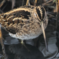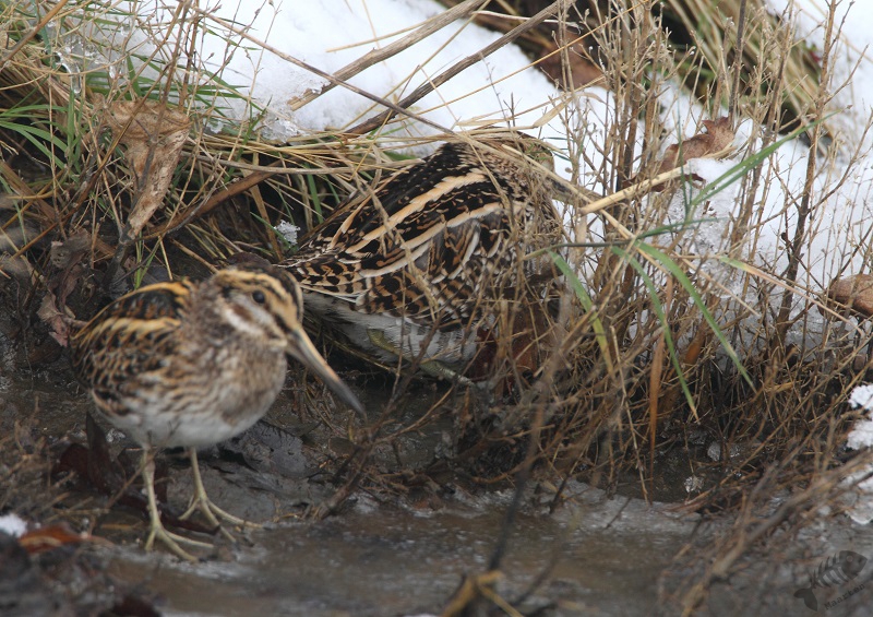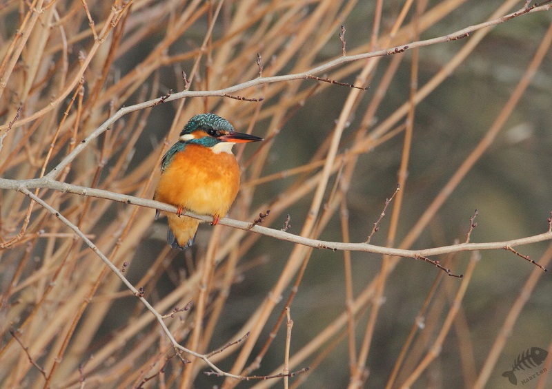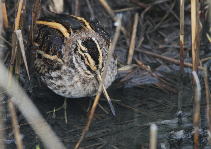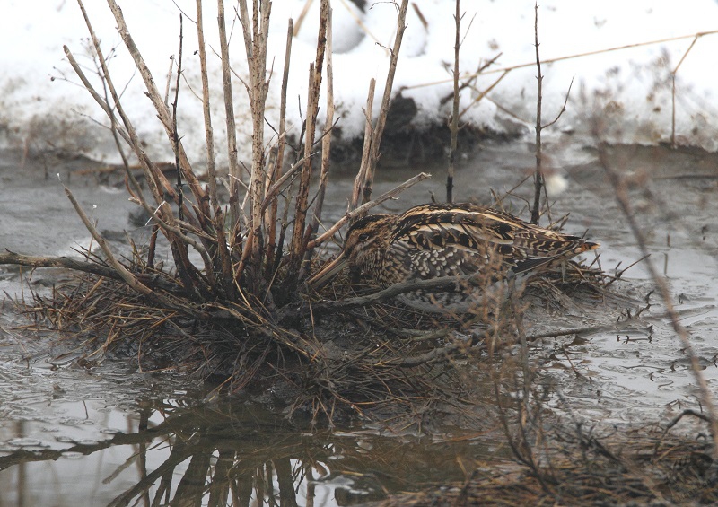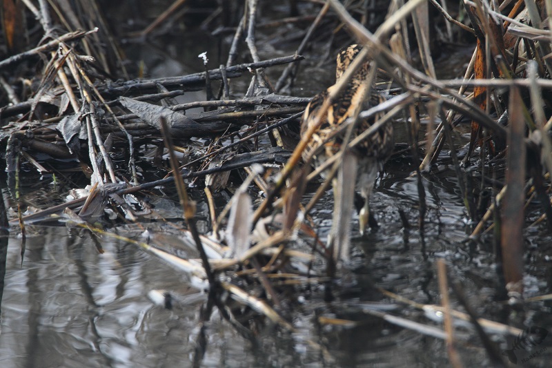 De omstandigheden waren hier ook wat beter geworden dus eindelijk kreeg ik weer eens mooie plaatjes van deze heel leuke soort. Omdat ik zo gefocust was op de Snippen, zag ik in eerste instantie niet dat er een andere wegsloop: een Bokje sloop weg bij een Watersnip! Ik kon hem volgen en hij ging niet veel verderop zitten. Na zo’n 150 opnamen waarbij totaal geen beweging zat, ging hij aan de wandel en heb ik hem in andere posen kunnen vastleggen. Wat een geweldig leuke vogel! Ze lijken erg op de Watersnip, maar zijn kleiner, hebben een kortere snavel en hebben geen lichte streep over het midden van hun kop. Toen ik dacht dat ik wel voldoende opnamen had, werd ik nog even opgeschrikt door een flits: een IJsvogel ging op nog geen 3 meter van me in een Rietstengel zitten! Dit kon ik niet vastleggen (te dichtbij en de autospiegel zat in de weg…), maar al heel snel ging hij iets verderop in een Wilg zitten. Na 10 foto’s vloog hij weer op en vloog via de sloot weg. Ik ben toen nog even met een aantal andere fotografen gaan praten, maar al vrij snel bleek dat zij de zaken iets anders bekeken dan ik en ik ben dus maar weer verder gegaan.