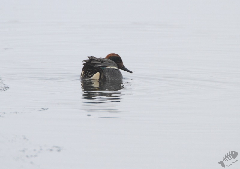Toen ik terugkwam bij m’n auto, zag ik een Eend zwemmen ver op het water en kon deze niet thuisbrengen. Ook deze heb ik opgezocht en het bleek een vrouwtje van de Brilduiker te zijn.