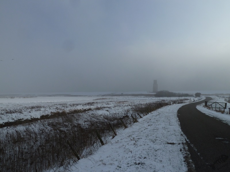 Op waarneming was ook te zien dat op de Brouwersdam vaak leuke soorten te zien zijn. De 2 keer eerder dat ik naar Zeeland was geweest, had ik me niet gerealiseerd dat ik over deze dam heen kwam… Nu ben ik dus nog vroeger vertrokken zodat ik de Brouwersdam mee kon nemen. Ik was zelfs zo vroeg vertrokken dat ik vergeten was handschoenen en een muts mee te nemen. Bij het laatste pompstation voor Zeeland vond ik ze nog en heb ze meegenomen. Achteraf kan ik zeggen dat ik daar héél blij mee was: wat was het koud!